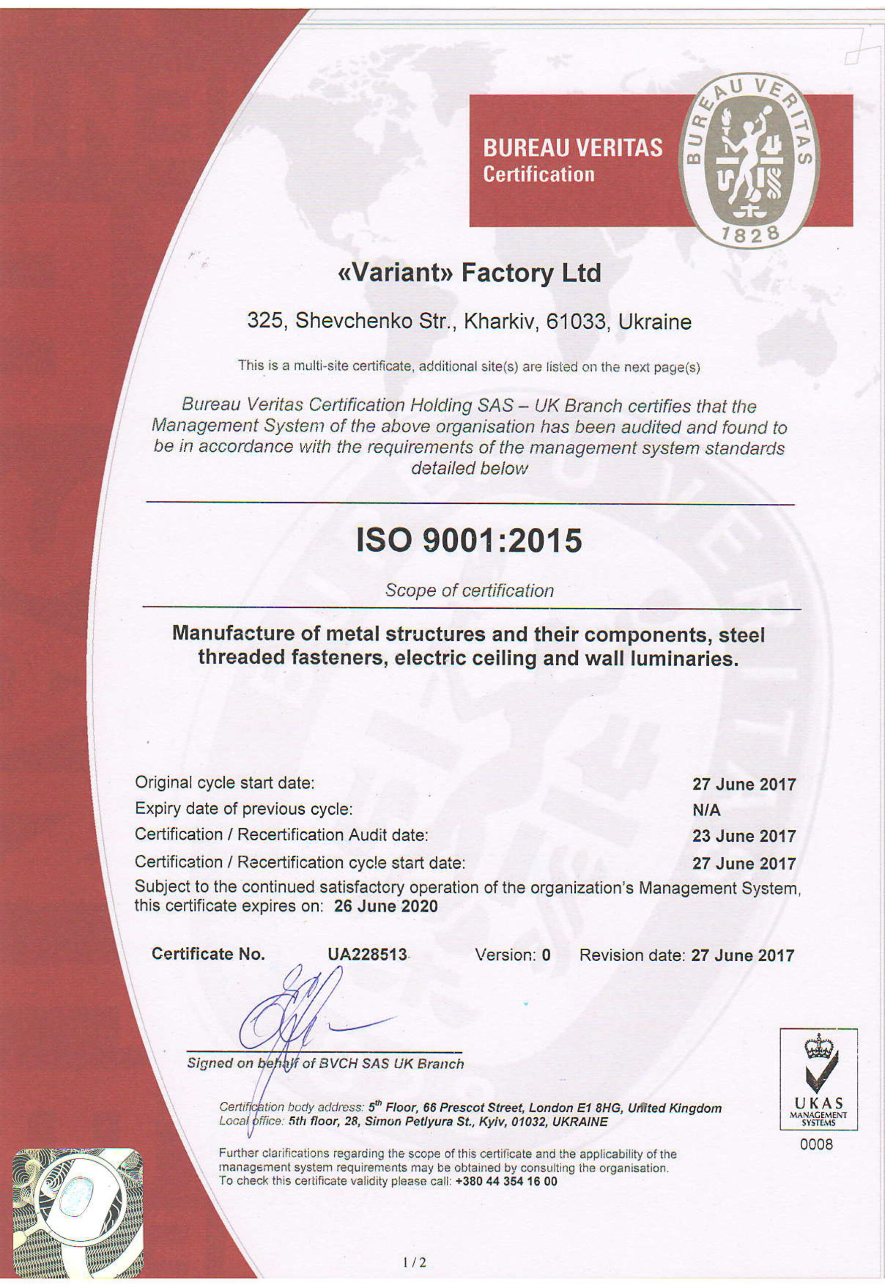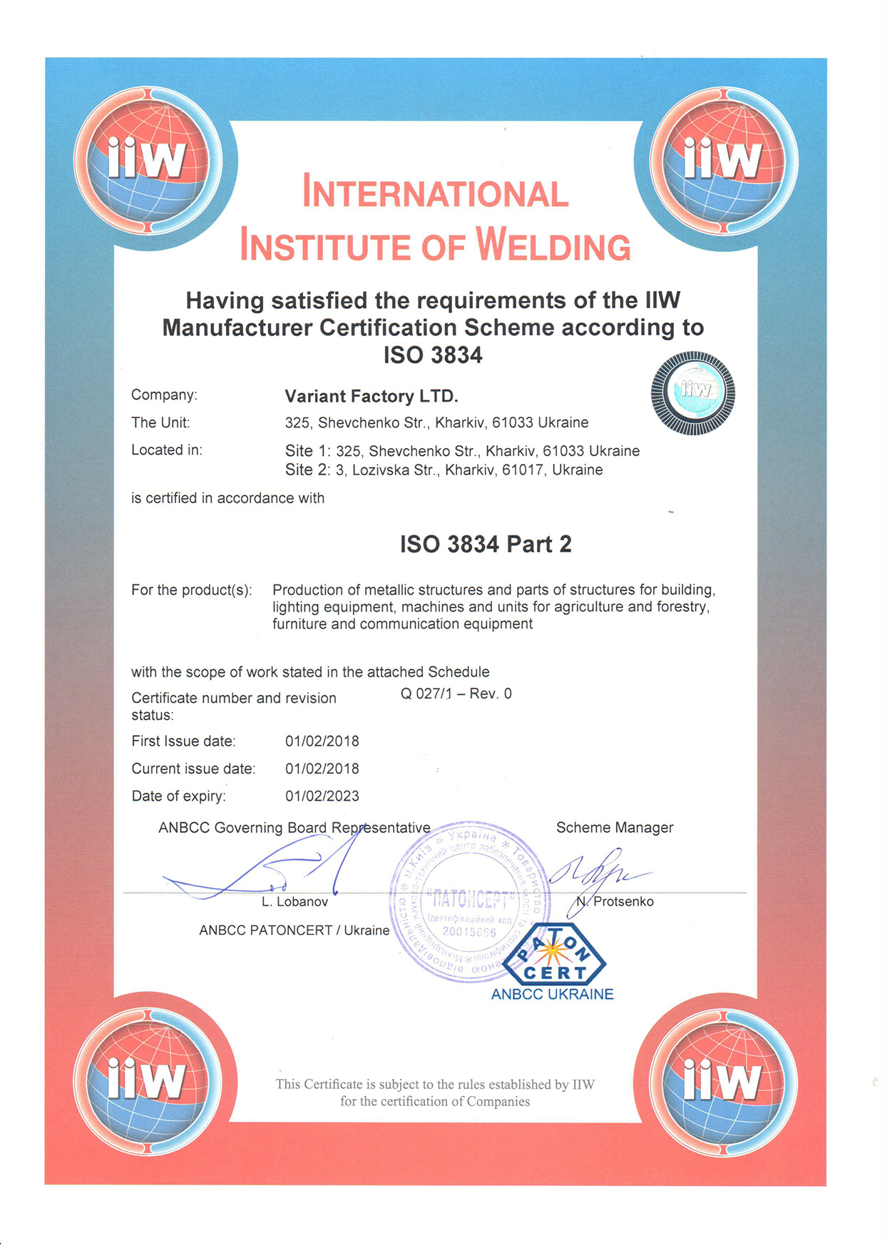 Η Variant δίνει ιδιαίτερη προσοχή στην επαγγελματική ικανότητα των υπαλλήλων της. Όλο το προσωπικό του Τμήματος Ποιότητας Προϊόντων έχει εκπαιδευτεί και πιστοποιηθεί σύμφωνα με τις απαιτήσεις του Συστήματος Διαχείρισης Ποιότητας ISO. Όλες οι τεχνικές διαδικασίες παραγωγής στην εταιρεία υπόκεινται σε συνεχή έλεγχο και έλεγχο από πιστοποιημένους εμπειρογνωμόνες προκειμένου να συμμορφώνονται με τις απαιτήσεις ασφαλούς και αποτελεσματικής παραγωγής.